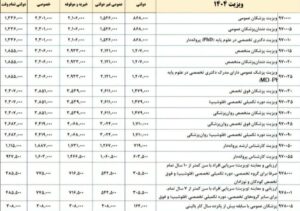 در جدول زیر مبلغ دقیق ویزیت پزشکان عمومی، متخصص و فوق تخصص در بخش‌های دولتی، عمومی غیردولتی، خیریه و موقوفه، خصوصی و دولتی تمام وقت قابل مشاهده است.